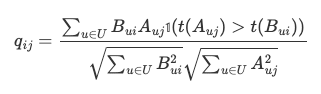 The substitute score is defined similarly but based on view of i and purchases of j: